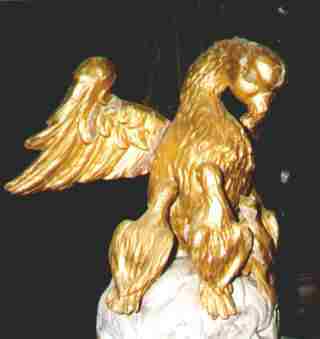 Haben Sie diese Figur auf dem Hochaltar entdeckt: der Pelikan, der seine Schwingen ausbreitet und sich seine Brust aufhackt, um mit den Blutstropfen die Jungen zu nähren?
